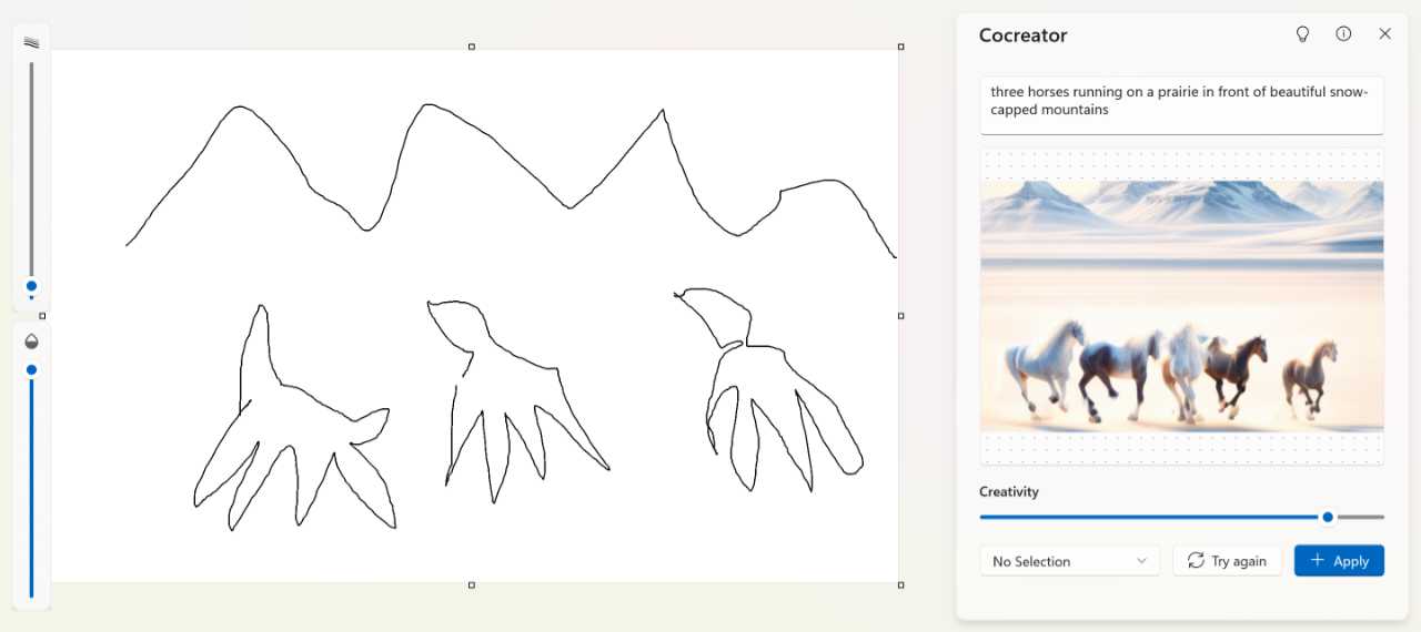 To apply the generated image and replace your sketch, click “Apply.” If you want to regenerate a new image, click “Try again.”