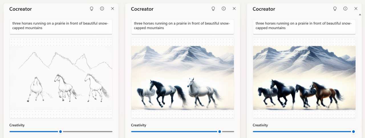 Note the Creativity slider: It defaults to 70 , in a range of 0 to 95, and the higher the value, the better the quality of the image it creates. At 0, the image will be identical to the drawing you make on the canvas.