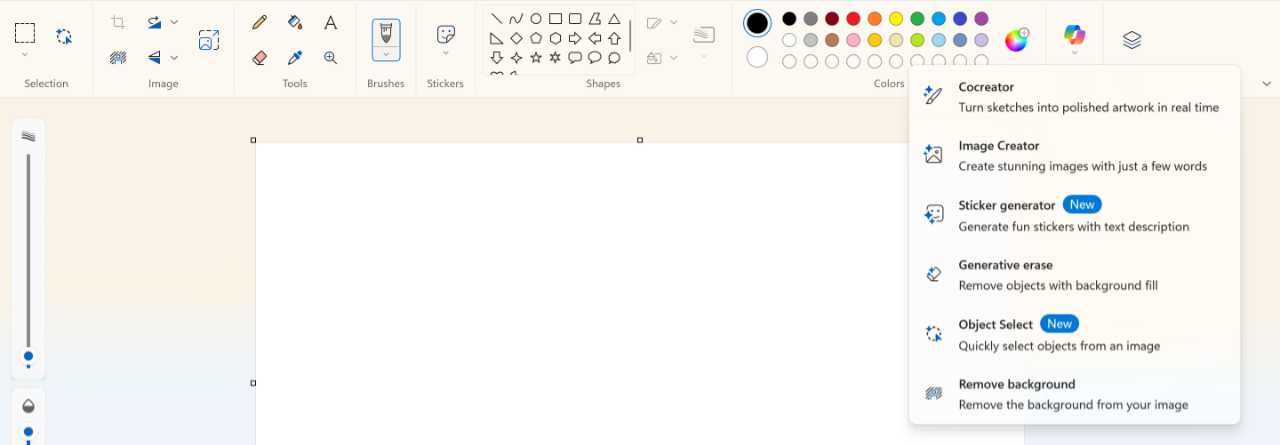 ✅ Tip: Unlike Notepad, none of Paint’s new features, AI or otherwise, can be disabled. When it comes to Paint, what you see–from a functional standpoint–is what you get.