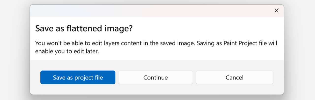 The layers feature in Paint was useful as originally implemented, but it had one major flaw: Once you were done editing an image with multiple layers, you could save it as a file in PNG or some other image format, but there was no way to edit the layers individually after you closed and re-opened the image. But Paint now offers a related Projects feature that lets you save a Paint project with multiple layers as a .paint file so that you can continue working on these images as needed and never worry about losing the layers data.