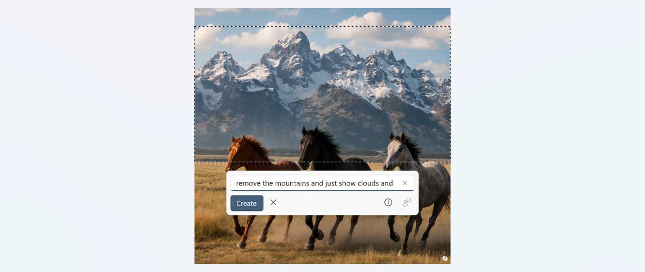 When you’re done, click “Create.” After a brief blue-purple-pink animation similar to other AI tasks appears, Paint will make the change you requested, or at least try.