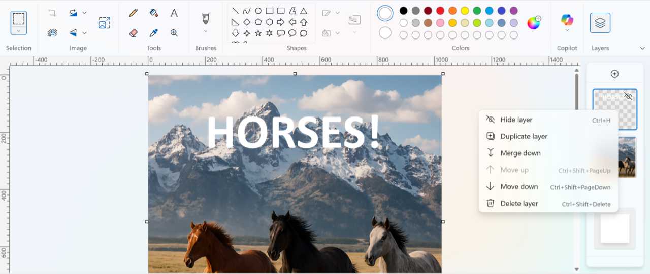 After Microsoft announced Windows 11 in mid-2021, it began promoting updates to in-box key apps, including Paint. At first, the changes were mostly visual in nature, with Paint and other apps better conforming to the Windows 11 look and feel. But in time, Paint began to receive functional updates too. These included an updated Text tool, a Photoshop-like layers capability, and transparency support that also allows the app to open and save transparent PNG files; that latter feature works with layers, too, so that you can erase content in one layer and reveal content in a layer below that.