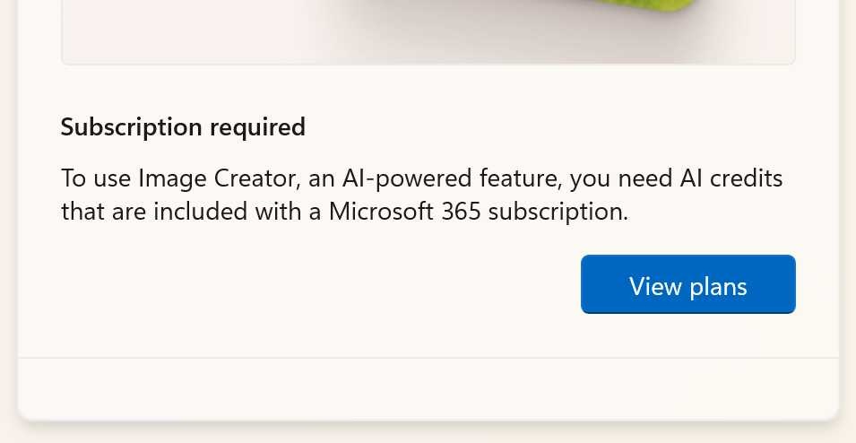 According to ? the Microsoft Support website, Microsoft 365 subscribers receive an allotment of AI credits each month, and they can access advanced, cloud-based AI features offered through the subscription by paying for them with these credits. As an example, a Microsoft 365 Personal subscriber gets 60 AI credits each month, and each time they use the Image Creator or Generative erase features in Paint, they spend one AI credit.