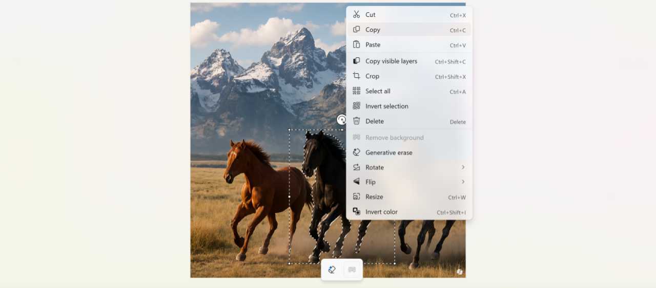 Object select works like similar features in Adobe Photoshop and other professional image editing solutions: You can mouse over objects in an image and Paint uses AI to select each in turn, so you can find the one you want and then copy, move, or erase it, or replace it using Generative fill.