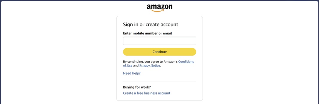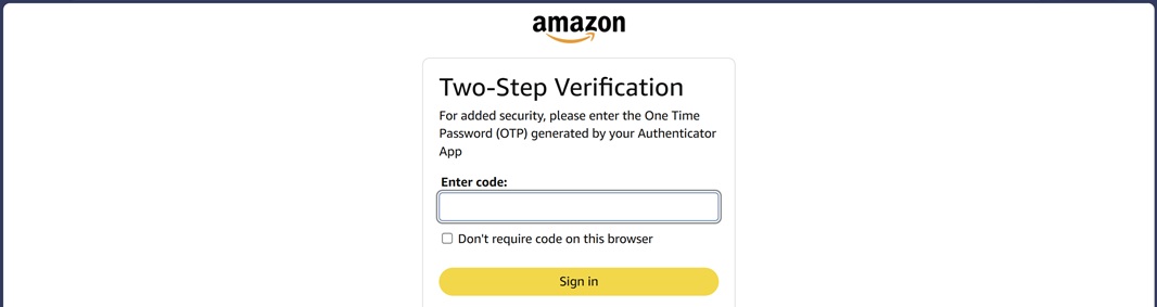 To use the code, sign out of Amazon in the web browser on your PC (or, for testing purposes, just open an Incognito browser window or similar). Then, sign-in normally: Amazon will prompt you to enter your username (email address) or phone number and then your password (or your password manager will handle this automatically).