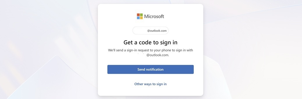 To test this experience, open an Incognito or similar web browser window on your PC, navigate to outlook.com, and click the “Sign in” button. In the Sign in screen, enter the email address of the MSA you just added to the Microsoft Authenticator app and click “Next.” You will be prompted to get a code.