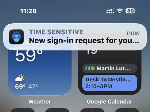 When you tap the notification (or just open the app), it will display a Microsoft Authenticator “Approve sign-in?” screen.