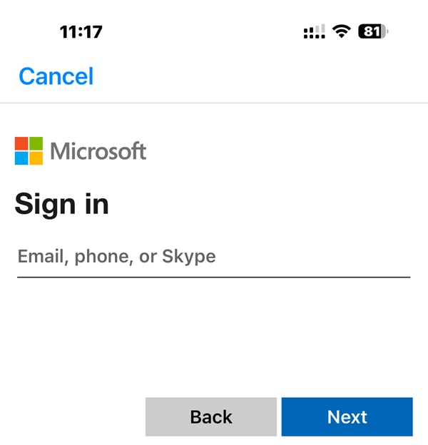 Enter your MSA email address as prompted and then tap “Next.” Then, enter your password as prompted. If you previously configured two-step verification as I recommend, you will also have to complete that process, perhaps by entering a code that’s sent to an alternative/recovery email account.