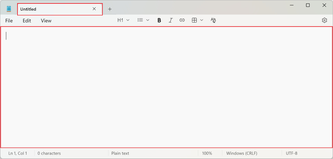 In the Windows App SDK, the TabView control is a container: It contains tabs (TabView controls), of course, but also other items like a header, which can include an icon as per Notepad (and WinUIpad), and a footer with the “Add new tab” button. But each TabView control is also a container: It can contain an icon, some content (typically text), and a “Close tab” button in its header (what most think of as “the tab”), and a big content area below it.