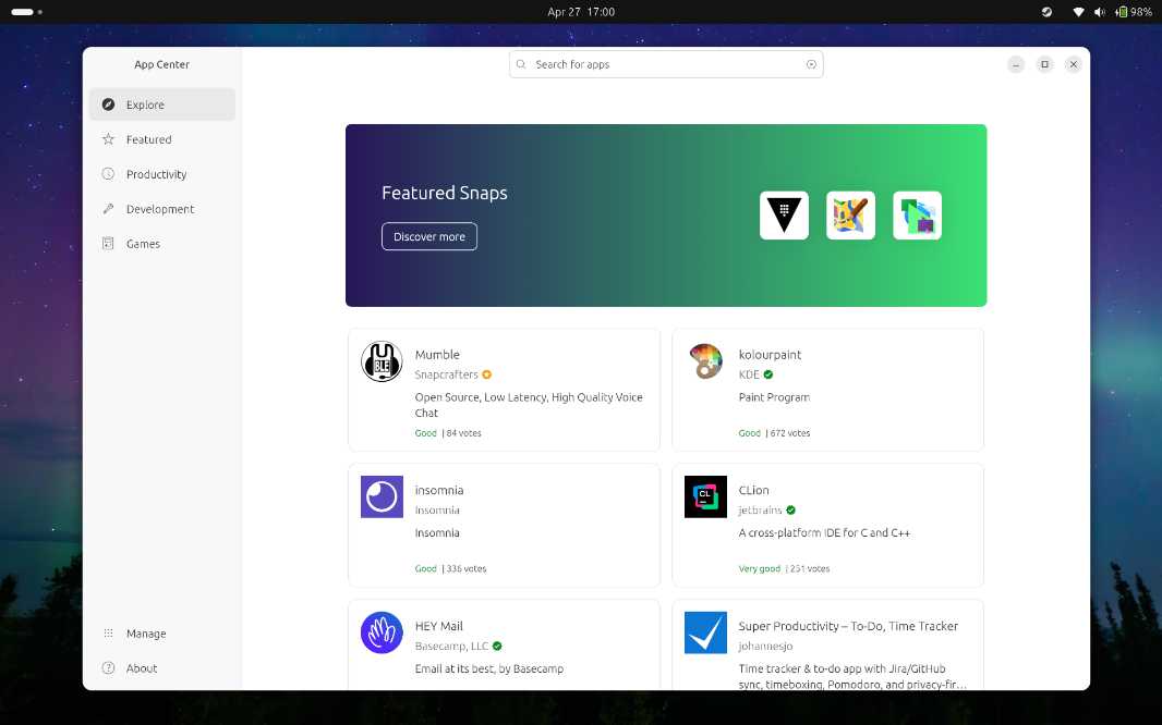 Ubuntu calls its app store App Center, which I suppose is on par with Software in Zorin OS. It’s simple and obvious, and it has all the apps I expect to find on Linux these days, including the Typora Markdown editor I love. It supports Snap, Deb, Flatpack, and other app package formats. Ubuntu is one of the smartest choices if you’re concerned about compatibility.