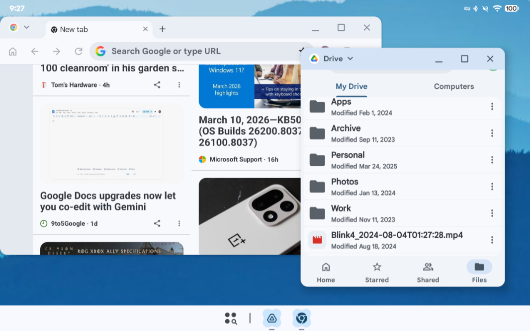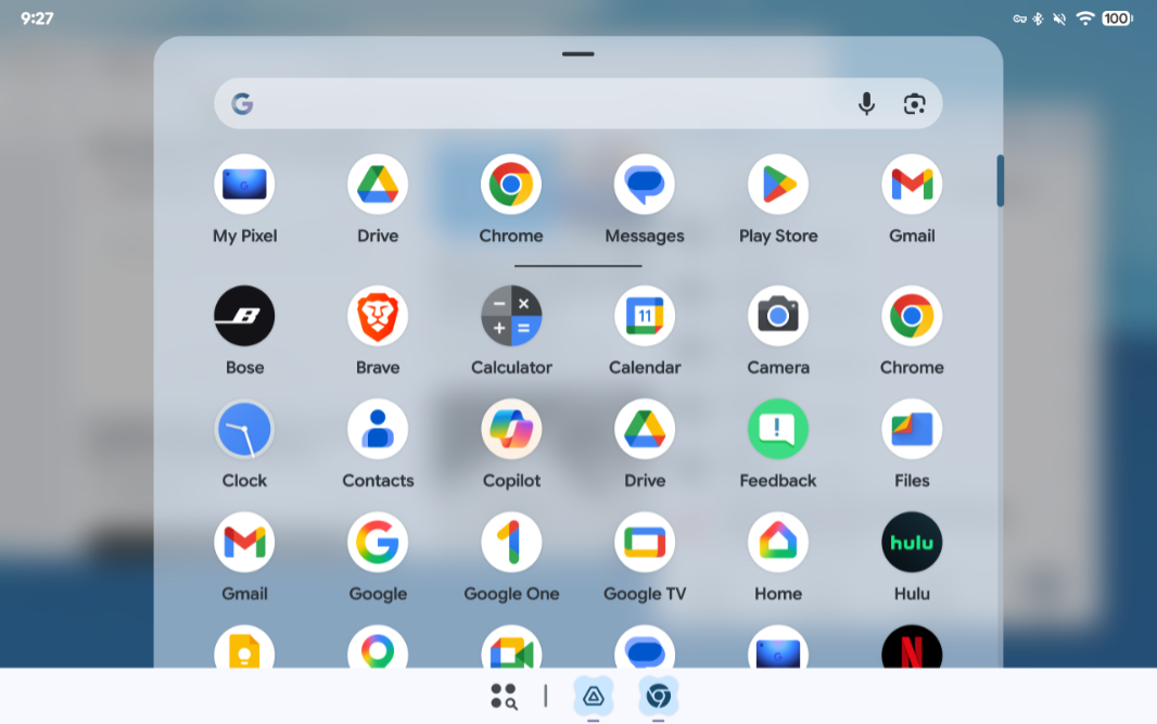 This works with touch, of course, the primary—and, for most, only—way that one would interact with Pixel Tablet or some other Android tablet. And when you do display an app in a window, a new taskbar appears on the bottom of the screen to enable task switching and app launching via a Start-like all apps panel.