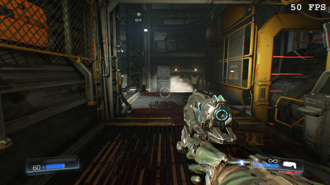 This game runs flawlessly at a consistent 30 FPS+ at the native 1920 x 1200 resolution. I ran it normally the first few times and then I enabled Video Super Resolution in the Snapdragon Control Panel, but I can’t see a difference. DOOM 2016 is hard-coded to max out at 60 FPS, from what I can tell, but I only see that frame rate in the menus. So I tried lowering the resolution to 960 x 540. The on-screen text looks horrible with that change, but the game looks fine, and the frame rates jumped up to 45-60 FPS during gameplay.