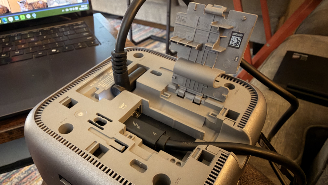 There is one oddity of this design change that may or may not be an issue for users: Where the hard-wired USB-C cable on previous units emerges from the front of the dock, the newly detachable cable on this one comes out of the rear of the dock, alongside the power cable. It’s a cleaner look, but the front-facing position gave the cable a bit more length, if that makes sense.