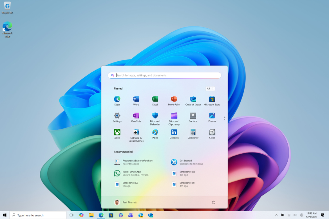 This is the default configuration thing I alluded to above. To configure ExplorerPatcher, just run the “Properties (ExplorerPatcher)” item you’ll find in the Recommended section of the Start menu. (If not, you can find it in the All Apps list too.)