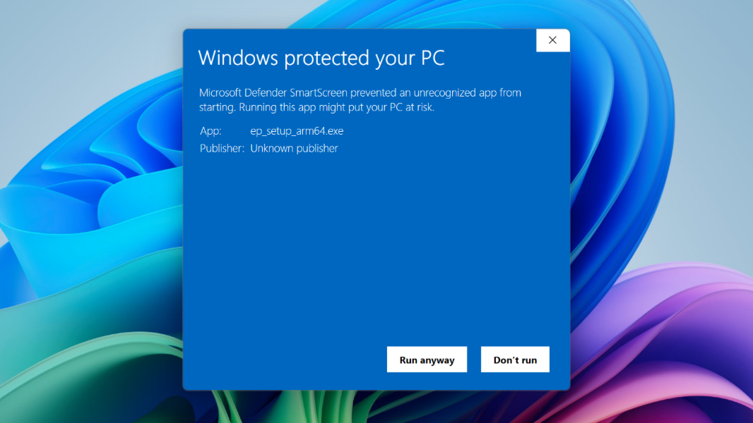 When you run the downloaded EXE, Windows 11 will throw up a Defender SmartScreen warning that you can bypass by clicking “More info” and then “Run anyway.” Twice. Because seriously.